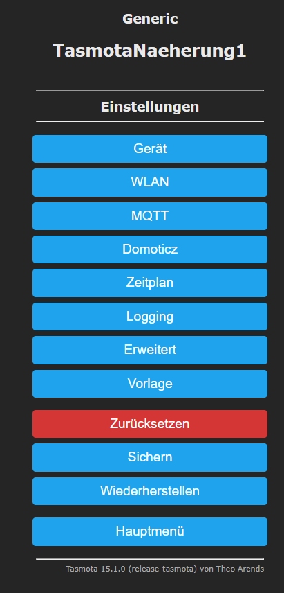 Über den "Besuchen"-Link kann man direkt in die Tasmota-Konfiguration des Näherungsschalters wechseln: