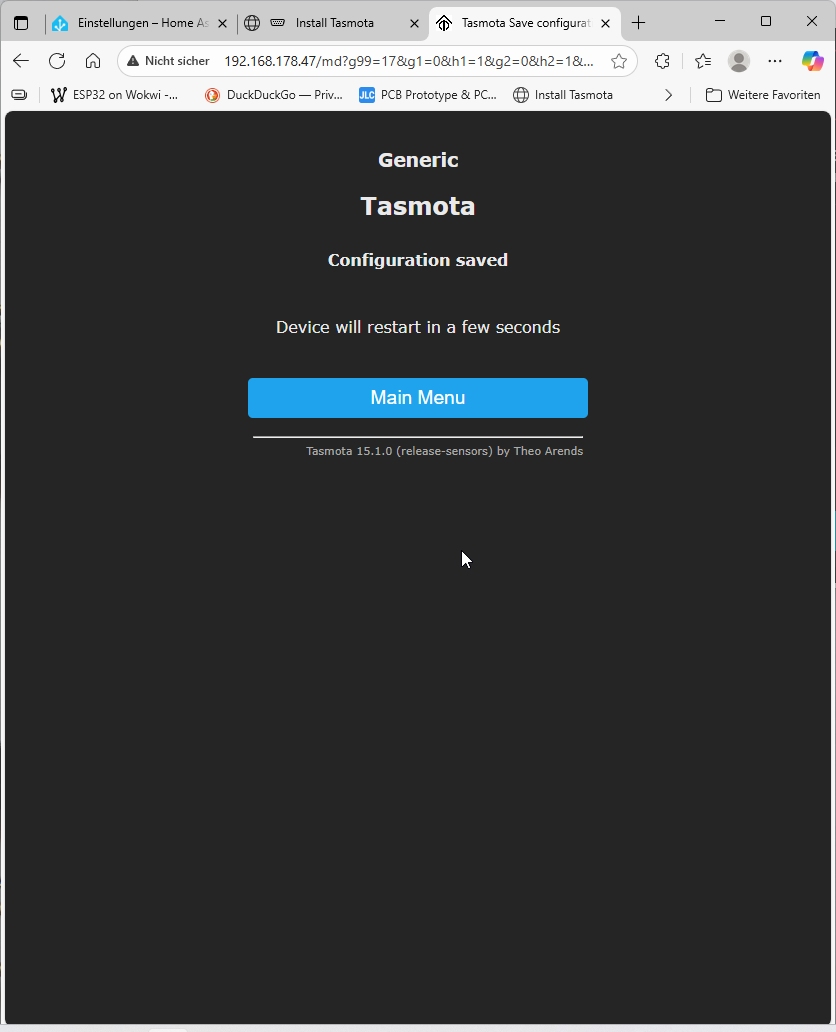 Nacgh dem Abspeichern startet der ESP ggf. neu